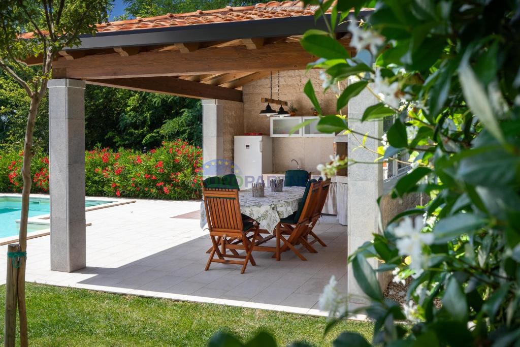 Nekretnina nudi 186 m2 stambenog prostora raspoređenog na dva kata, izgrađena je na parceli od 760 m2 i raspolaže s 4 udobne spavaće sobe, 4 kupaonice, bazenom od 32 m2 sa sunčalištem. Za turističko iznajmljivanje, kategorizacija 5***** jamči odličan prihod tijekom ljetne sezone. Na raspolaganju su privatni parking unutar dvorišta i – ono danas neizostavno – pouzdani unutarnji i vanjski Wi-Fi.